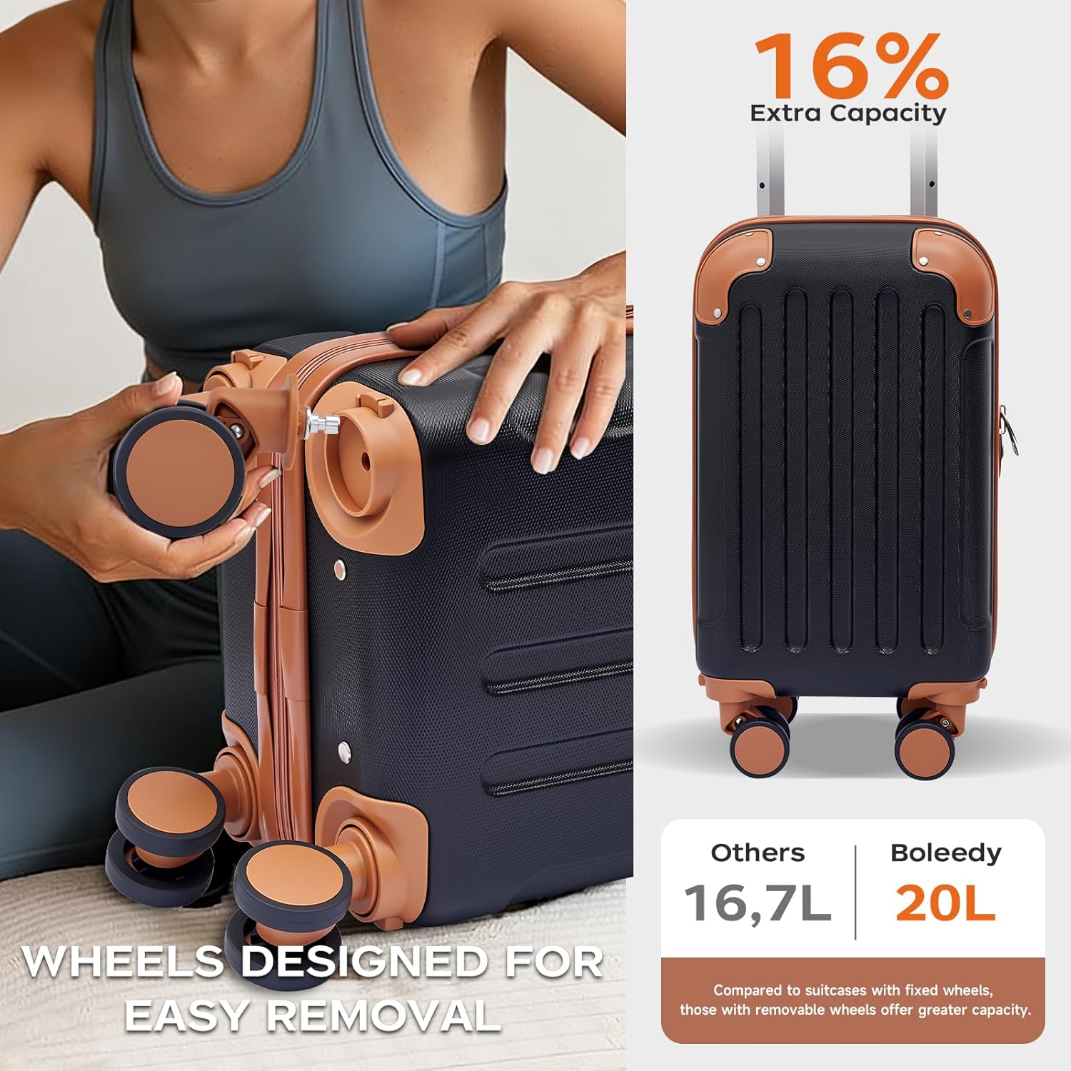 KOMPATIBEL MIT KABINENMAßEN – Unser 16-Zoll Hartschalen-Kabinentrolley (39×24,5×20 cm, Maße ohne Räder) ist für die Vorgaben vieler Airlines wie Ryanair, easyJet und Wizz Air ausgelegt und erspart Ihnen zusätzliche Kosten. Dank abnehmbarer Räder kann er sowohl als Kabinentrolley als auch als Handgepäck unter dem Sitz verwendet werden – das reduziert Gedränge und erleichtert das Boarding. Perfekt für Pendler, Geschäftsreisen und kurze Trips.